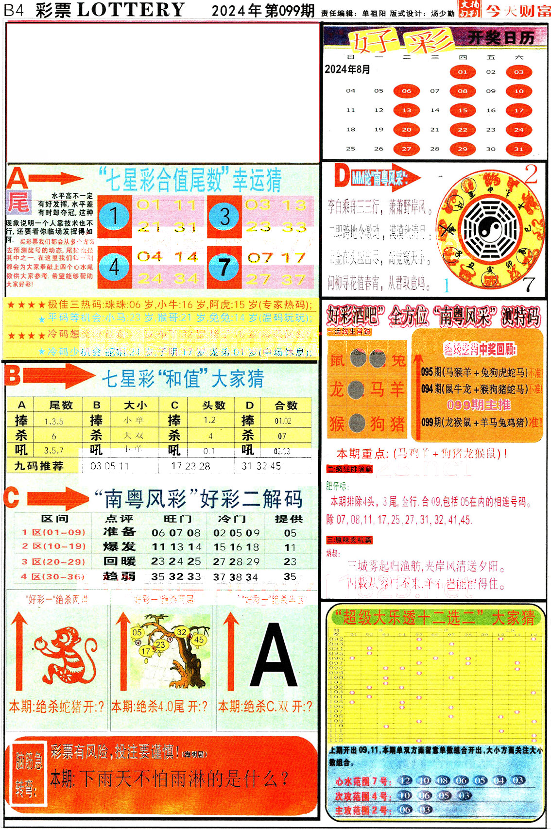 099期:彩民推荐:≮财富赢家≯→(七星彩) ...