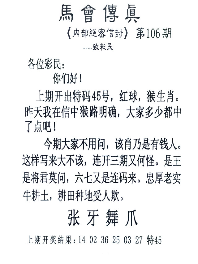 106期:首发推荐:≮馬會傳眞≯→(香港正版)