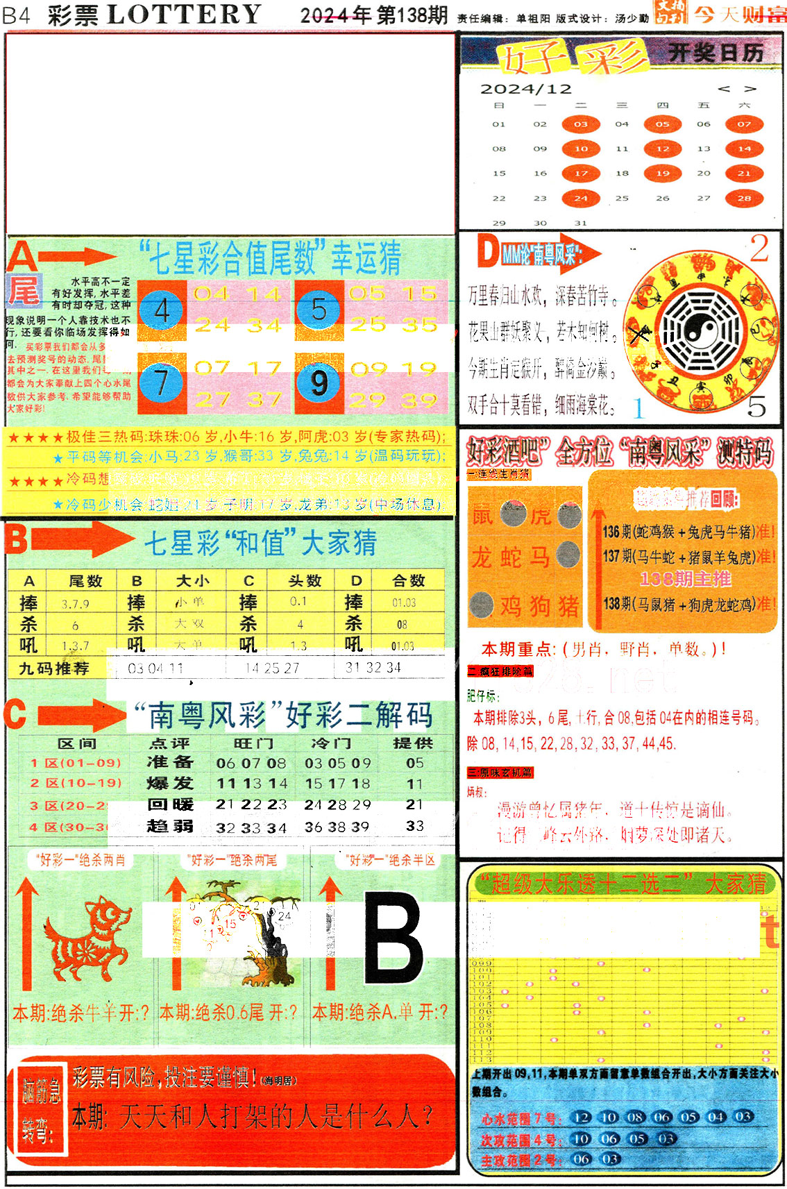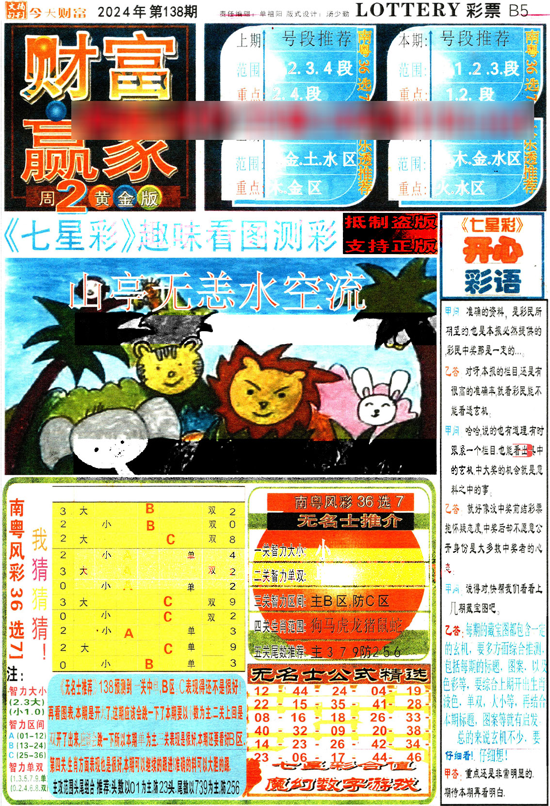 138期:彩民推荐:≮财富赢家≯→(七星彩)