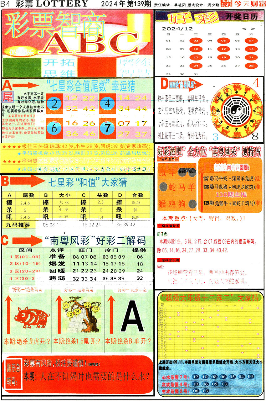 139期:彩民推荐:≮财富赢家≯→(七星彩)