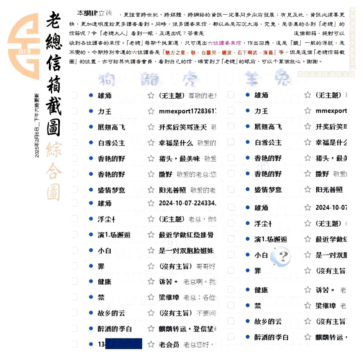 013期:六合皇金句/老总论码/萧公子/林大师/五行夺码/老总信箱截图