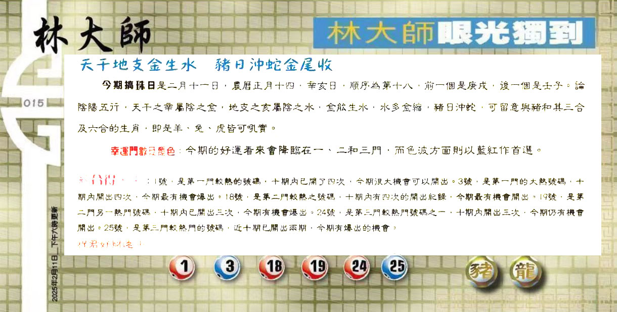015期:六合皇金句/老总论码/萧公子/林大师/五行夺码/老 ...
