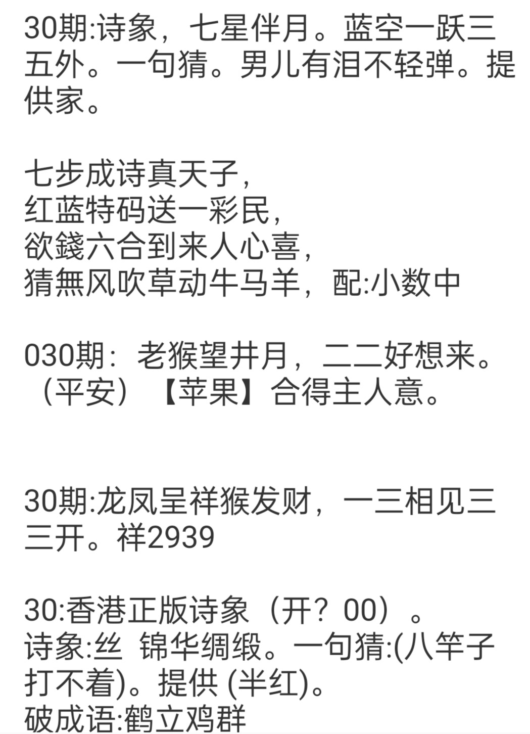 30.七步成诗真天子,红蓝特码送一彩民,欲錢六合到来人心喜,猜無风吹草动牛马羊,配:小数中,