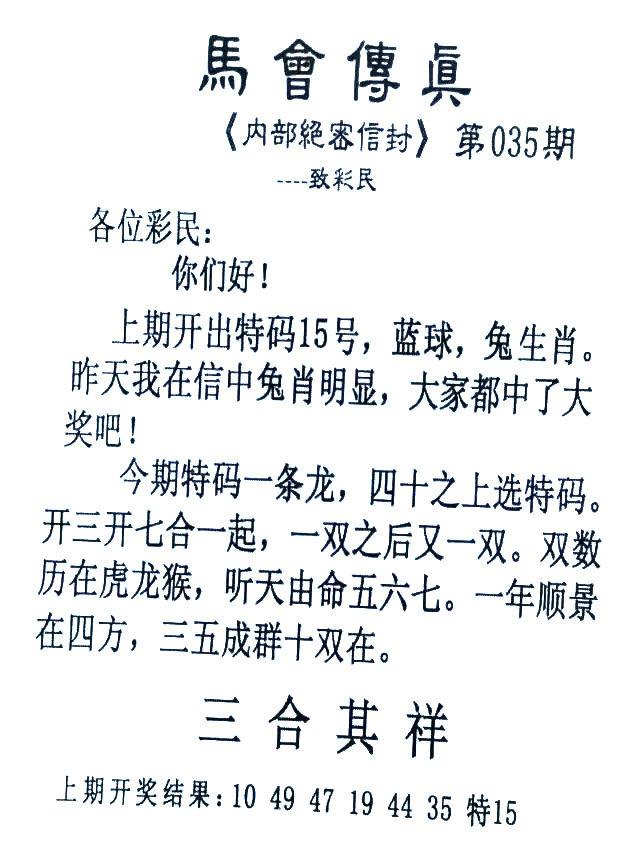 035期:首发推荐:≮馬會傳眞≯→(香港正版) ...