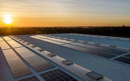 拍摄角度显得太阳能板有点平,应是有角度的,对着正南方位。日出到