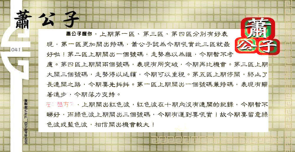 041期:六合皇金句/老总论码/萧公子/林大师/五行夺码/老 ...