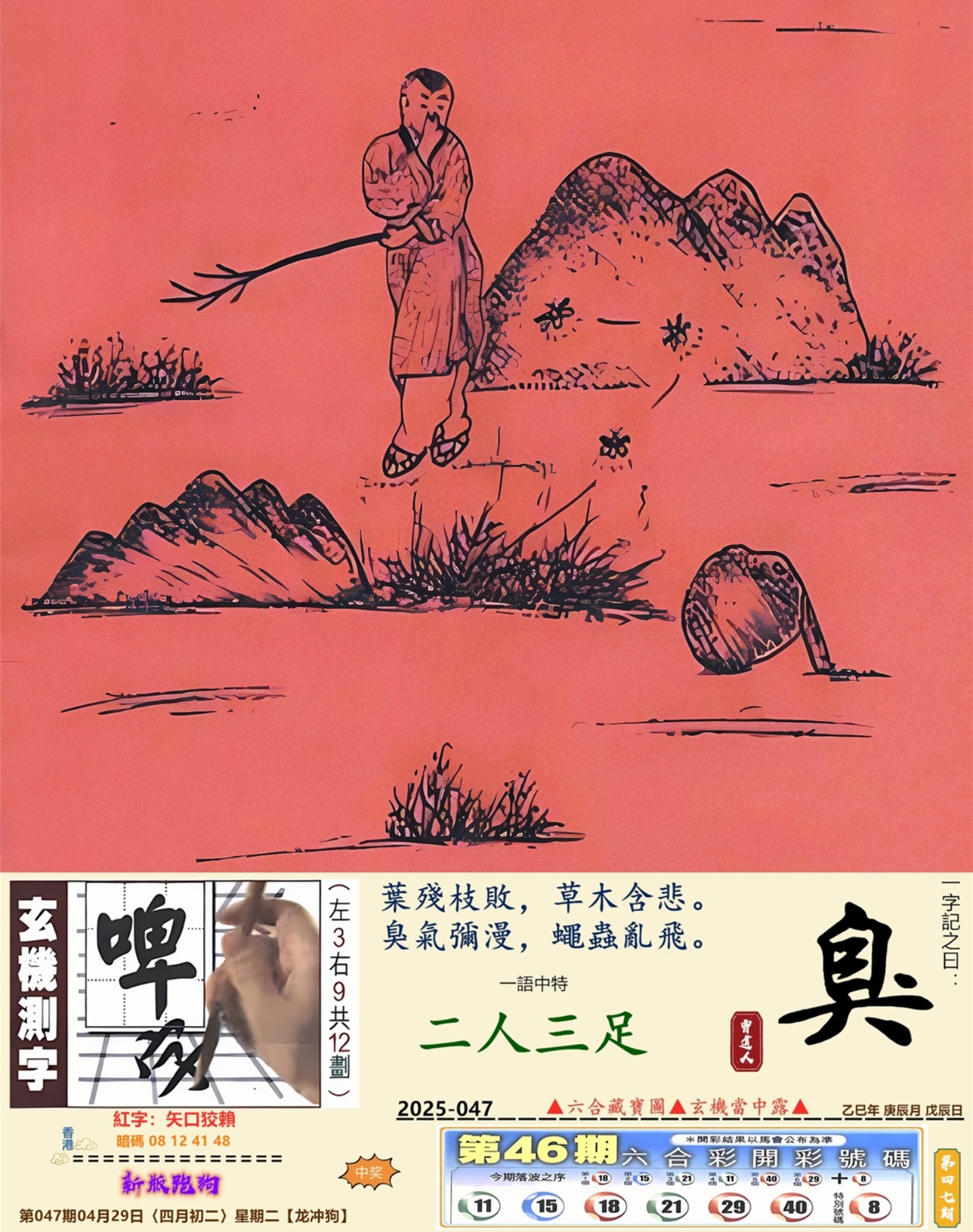 047期火车头:烧伤龙。诗:蛇死猪伤,马到边尾看其数。