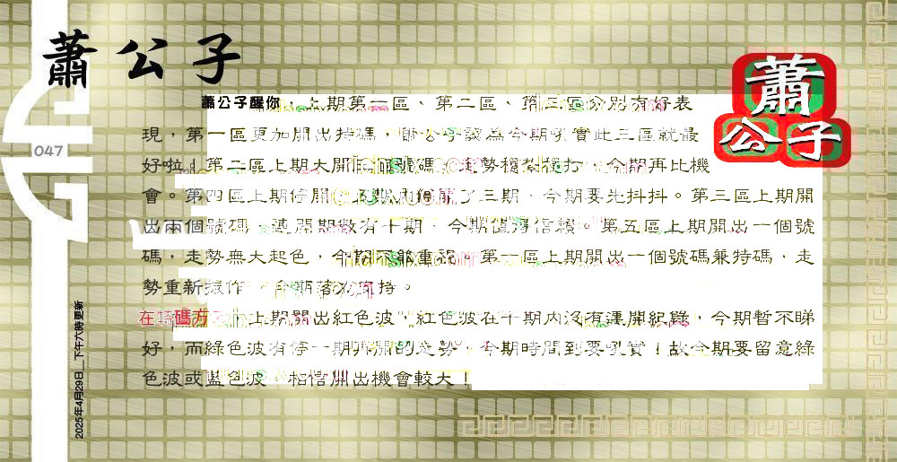 047期:六合皇金句/老总论码/萧公子/林大师/五行夺码/老 ...